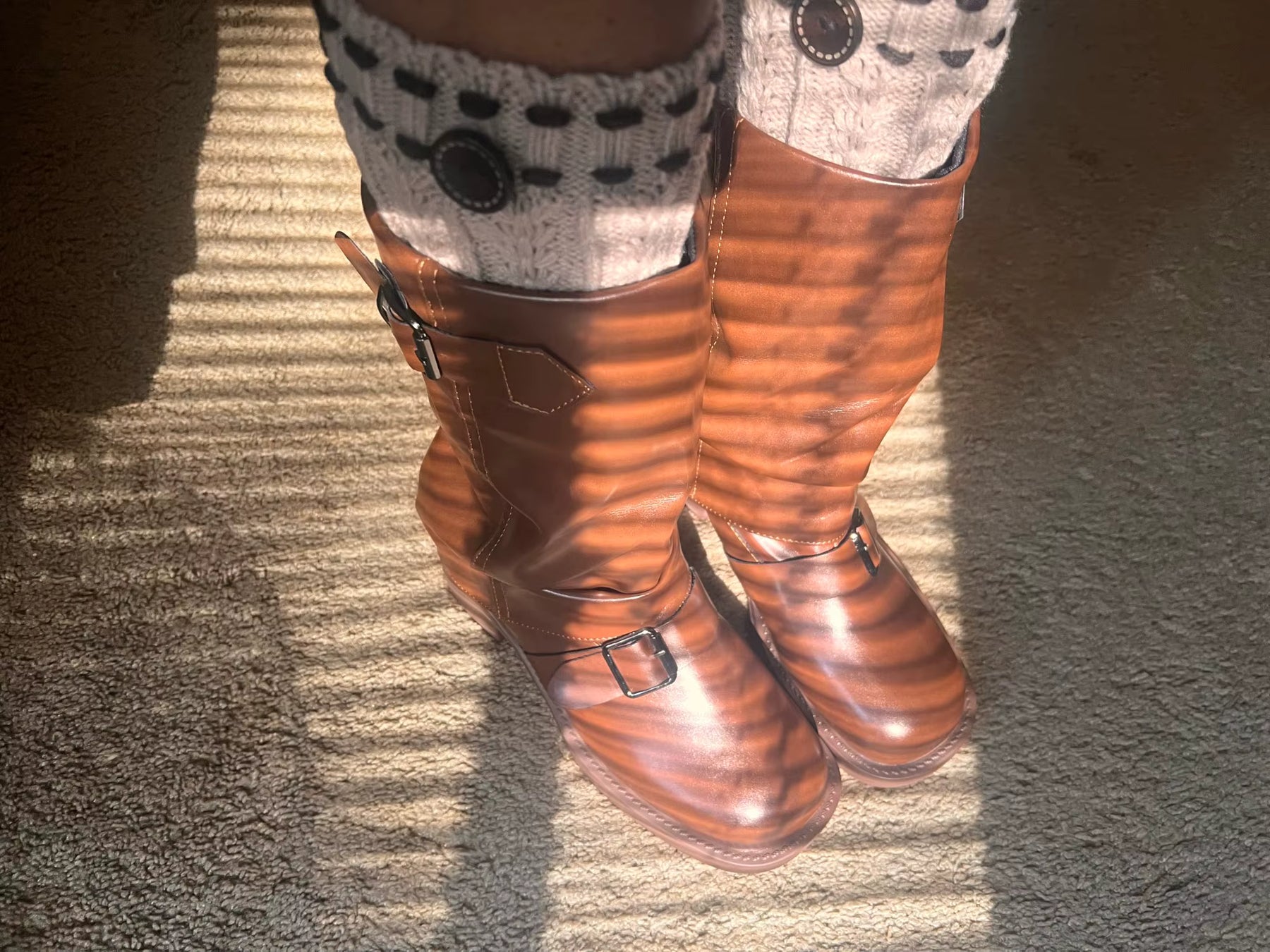 Answer 1: These boots are crafted from premium soft PU leather, ensuring both durability and breathability. The high-quality leather molds to your feet for a custom fit that grows more comfortable with each wear.